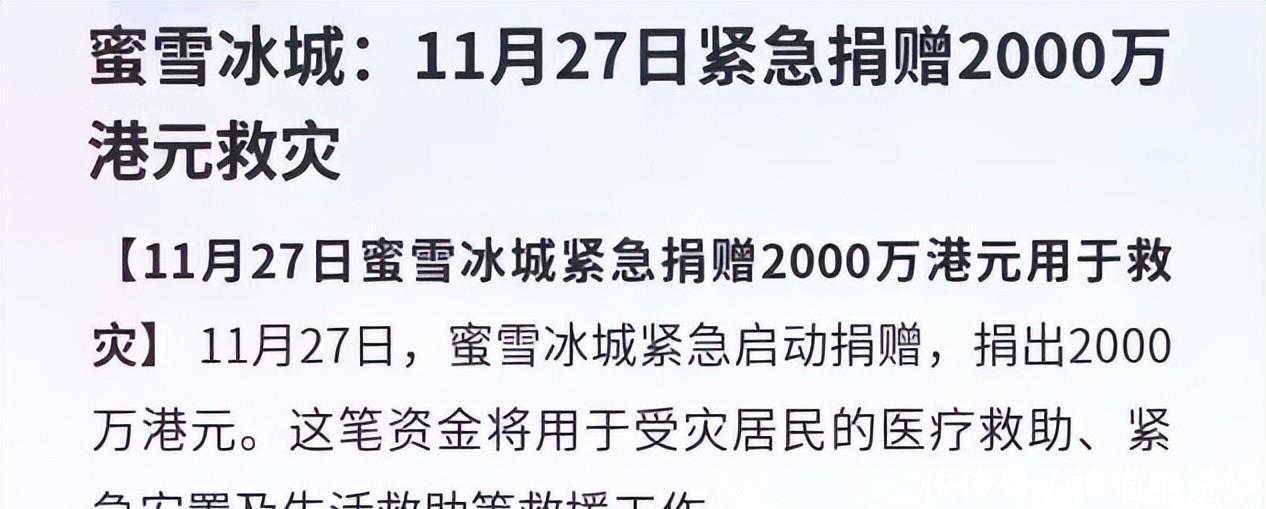 除了这些明星以外,蜜雪冰城号也捐出万港币。这笔钱后续将会用到那些受灾居民的医疗救助,还有紧急安置等方面。不少网友看了都特别感动,因为蜜雪冰城在一众奶茶牌子里边算是非常典型的平价牌子了。
