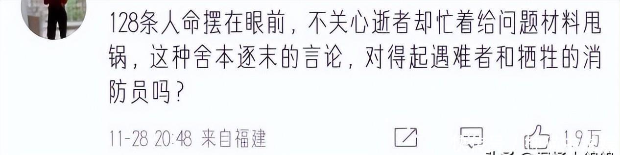 她把话说的言之凿凿,甚至直接否认了竹架的问题,还像模像样的给一众网友科普,说什么竹子不易燃。可是负责调查火灾起因的官方还没调查完,更是一个字都没有提到内地,她就先开始忙着泼脏水。