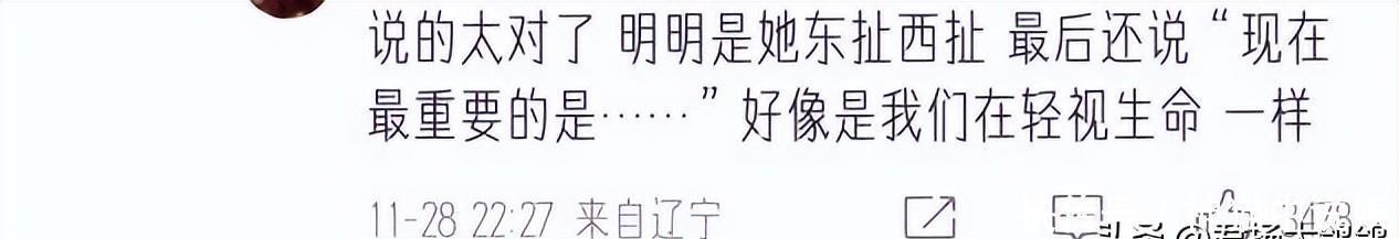 网友们越看越不对劲,尤其是那句“现在最重要的是……”。话里话外的味道简直就是在说指责她的那些人才是不尊重生命,来了一出超级大甩锅。